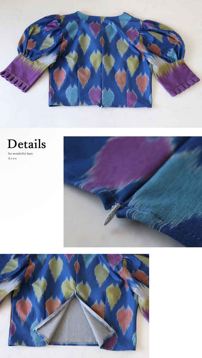 トップス 五分袖 ふんわり袖 イカット柄 ミディアム丈 レディース ファッション 大人カジュアル エスニック アジアン綺麗め「上品にエスニックを楽しむ フリルとふんわり袖のトップス」【da10226】 | deae