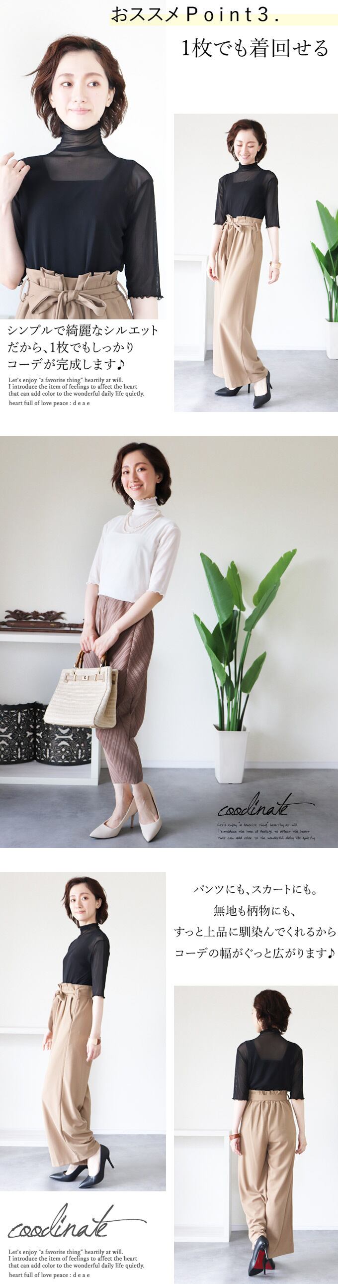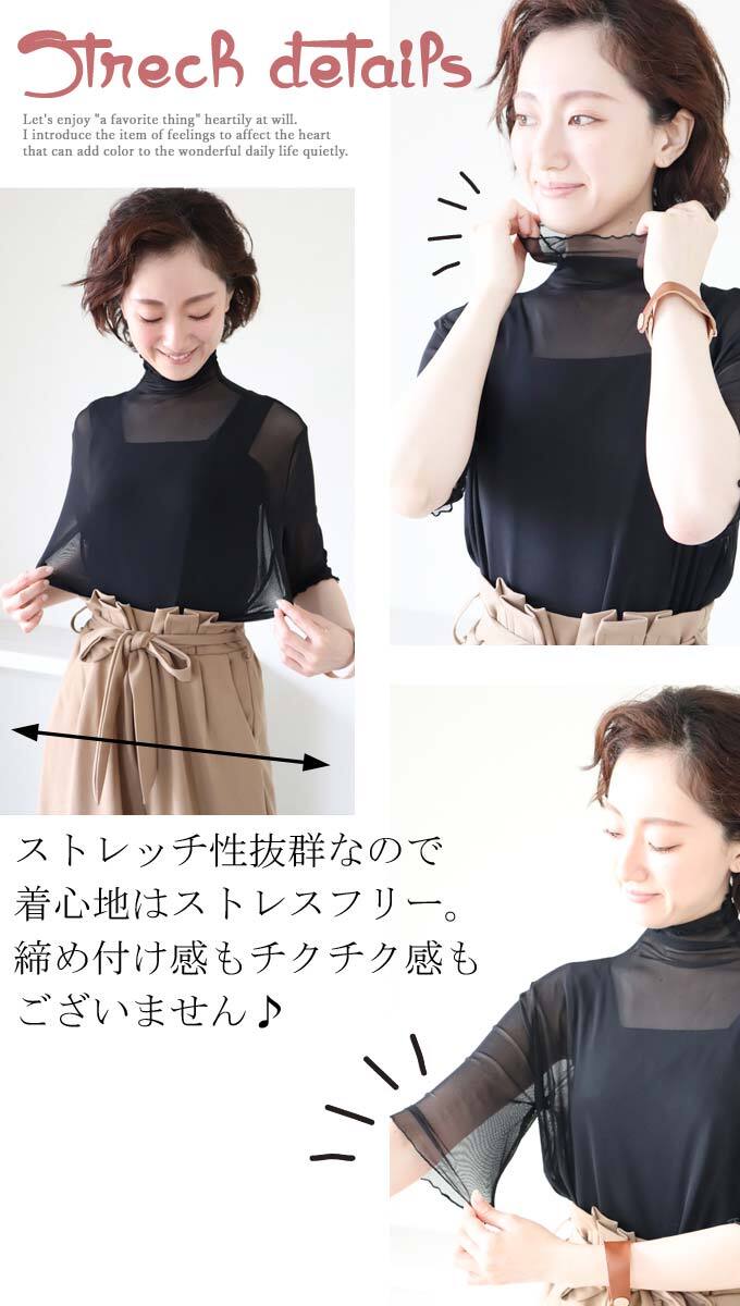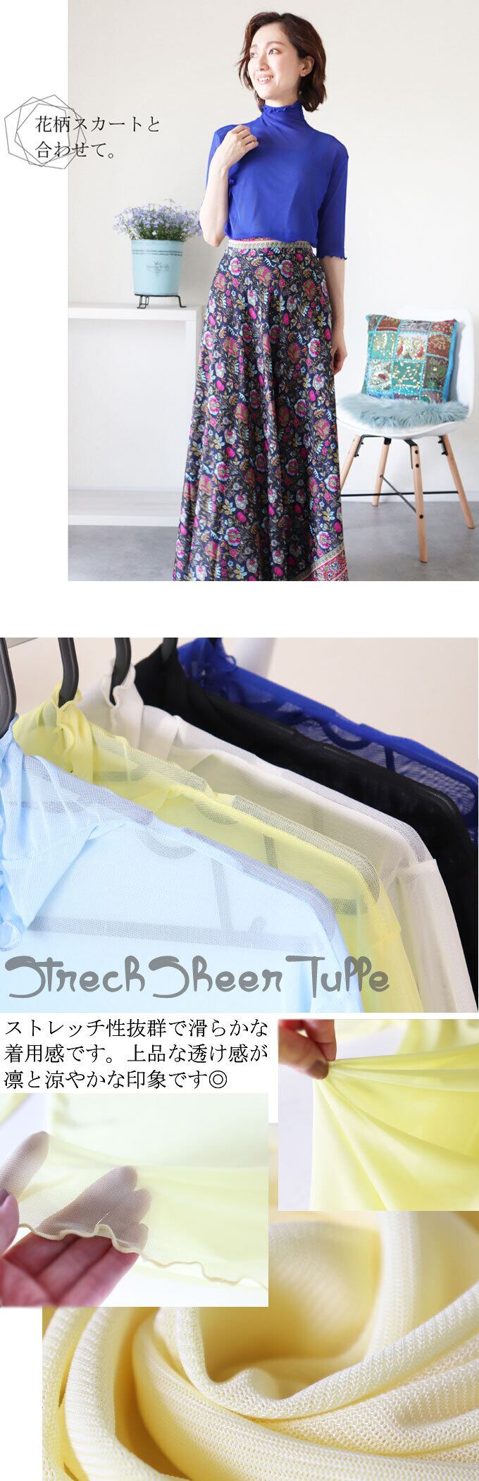 トップス レディース 5分袖インナー カラーインナー 春 夏 カジュアル きれいめ ホワイト ブラック イエロー ライトブルー サックスブルー【da10253】30代 40代 50代 60代 5分袖 オフネック ハイネック 首隠し 二の腕カバー カットソー プルオーバー ネット素材 シアー 透け感 春夏 綺麗め カジュアル | deae