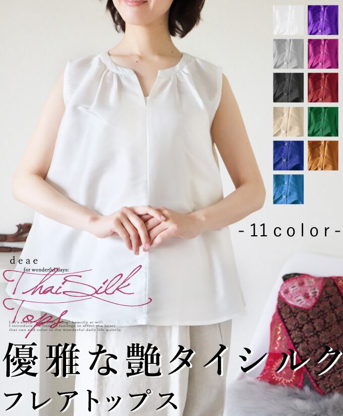 トップス レディース タイシルク ノースリーブ フレアトップス 春 夏 秋 優雅 高貴 綺麗め 上品 「優雅な艶 タイシルクのフレアトップス」【da10249】30代 40代 50代 60代 タイシルク トップス ホワイト ブラック グレー ベージュ ネイビー ターコイズブルー パープル ベリー ダークレッド マスタード グリーン
