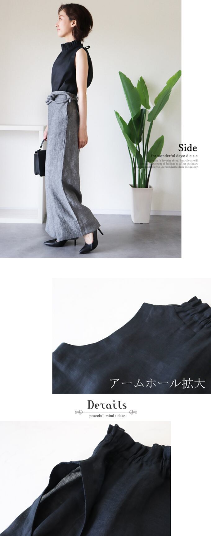 トップス レディース リネン 麻100% ノースリーブ 後ろリボン 春 夏 秋 優雅 大人ナチュラル 綺麗め 上品 「優雅なハリ感を愉しむ 着回し力抜群のリネントップス」【da10240】30代 40代 50代 60代 リネン トップス ホワイト ブラック グレージュ ベージュ ネイビー レースライラック | deae