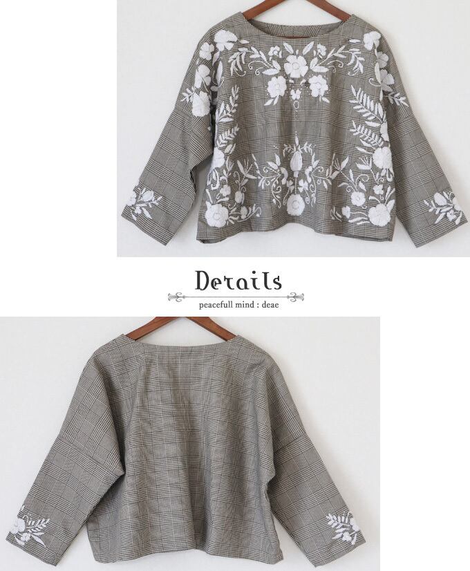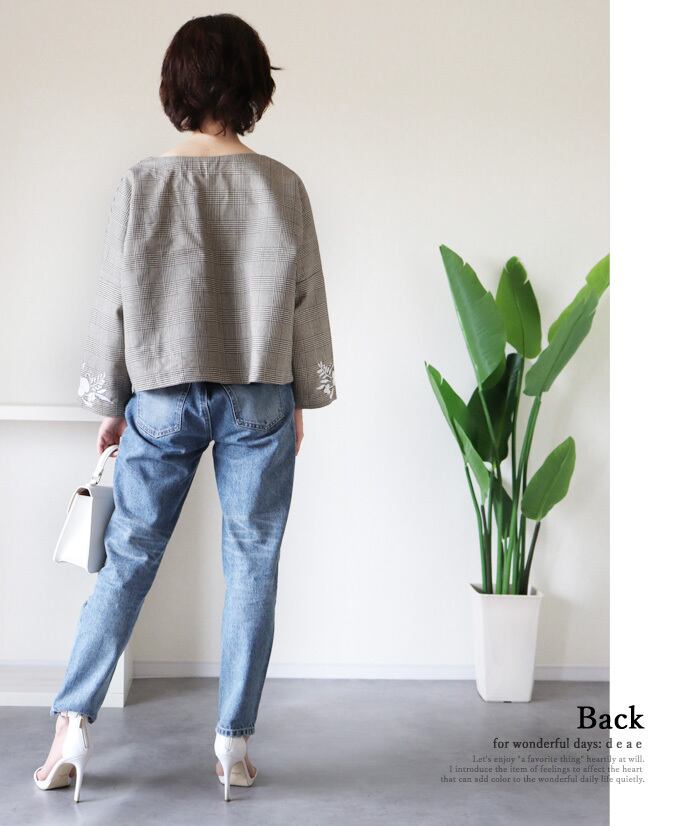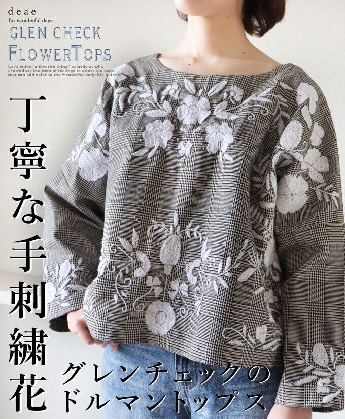 トップス レディース グレンチェック 花刺繍 ドルマンスリーブ プルオーバー カットソー 長袖 「グレンチェックと手縫い花刺繍の上品ドルマンスリーブ 長袖トップス」【da10250】30代 40代 50代 60代 ドルマン トップス 花刺繍 手刺繍