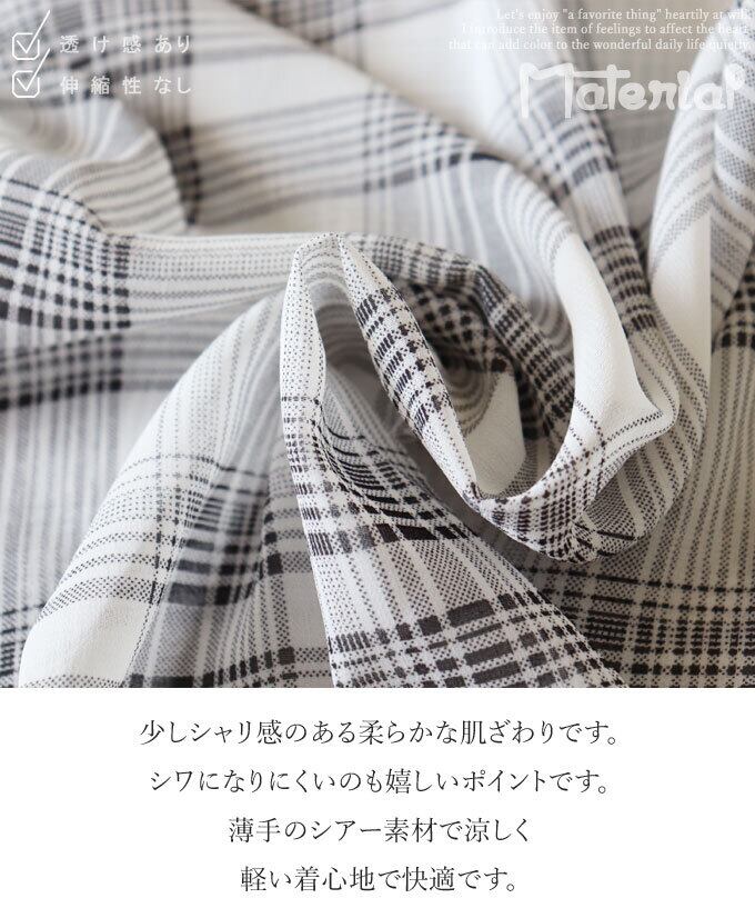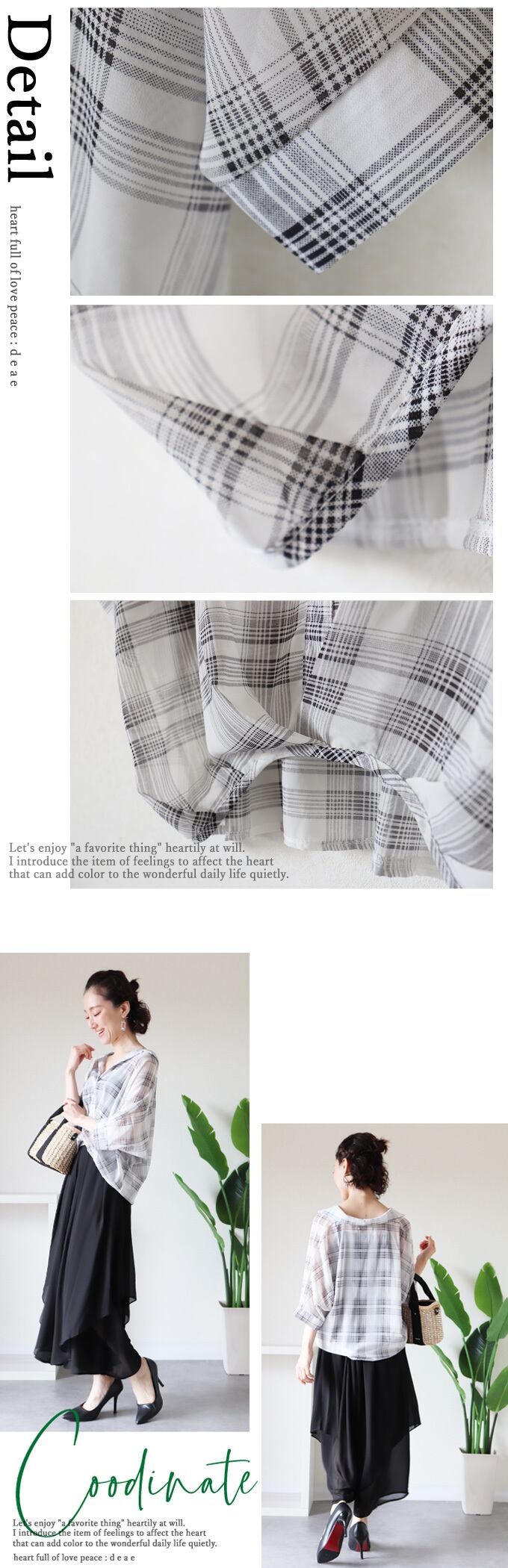 スキッパー シャツ プルオーバー トップス シアー チェック モノトーン 白黒 レディース カジュアル モード ゆったり 春 夏 秋 「シアーなチェックのスキッパーシャツ」【da10260】 30代 40代 50代 60代 カジュアル チェック シアー スキッパー シャツ | deae