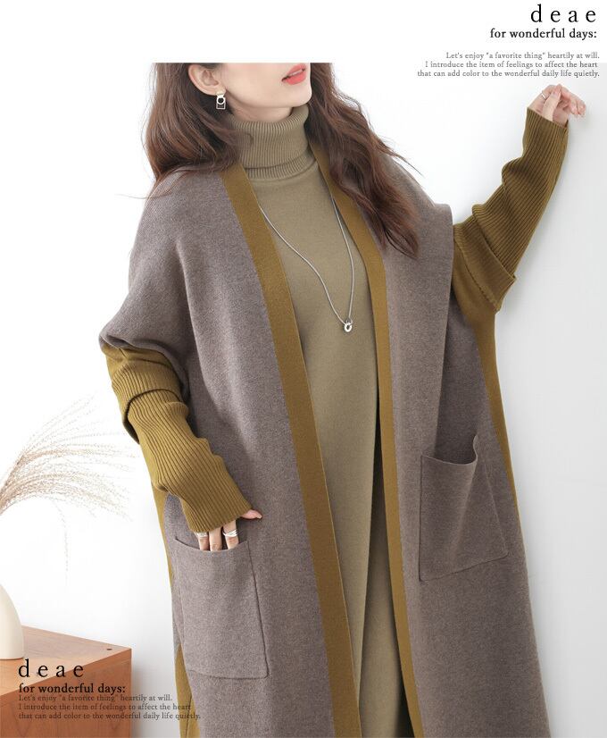 ニット ロング丈 羽織り カーディガン アウター バイカラー 長袖 レディース 上品 大人かっこいい 綺麗め カジュアル 「バイカラーのロング丈羽織り」【da10276】30代 40代 50代 60代 ニット ロング丈 羽織り アウター ブラック×ベージュ ブラック×ブルー からし ブルー モカ