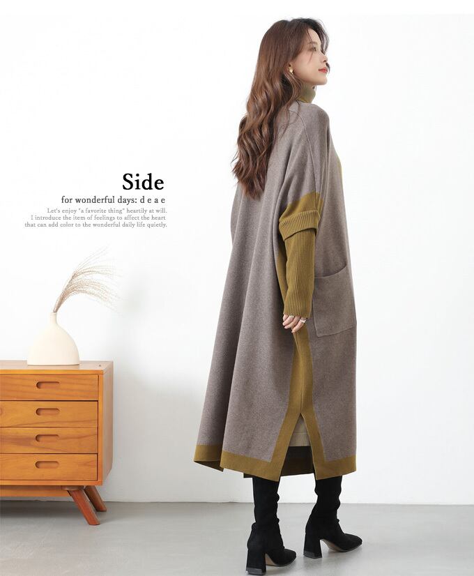 長めの丈感が、流行のニットスタイルをさらに引き立てます。素材は肌触りの良いニットで、暖かさと快適さを提供します。