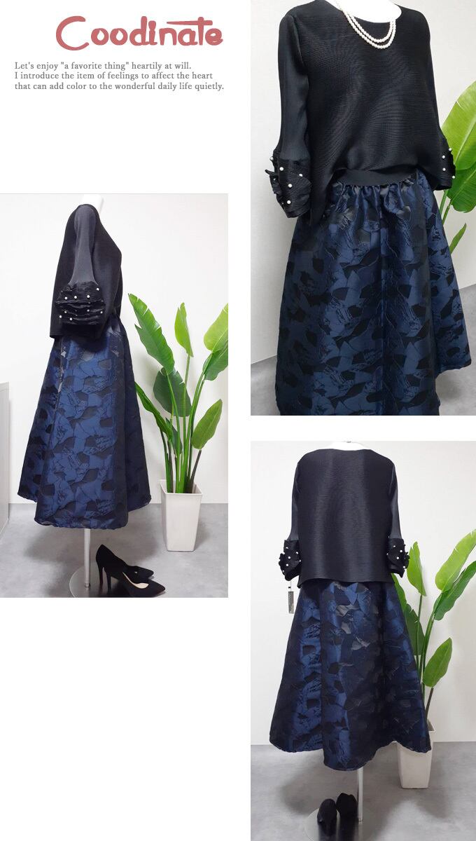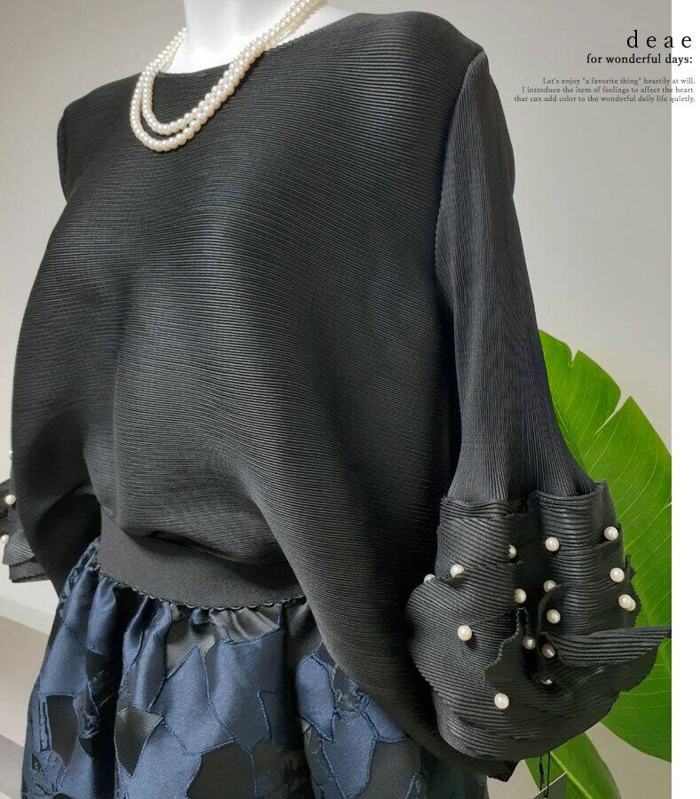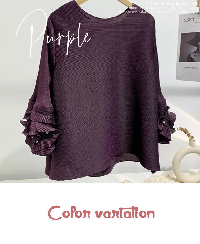 パール フリル トップス レディース 上品 綺麗め フォーマル オケージョン 長袖 七分袖「優雅に華やぐパールを散りばめたフリル袖トップス」【da10287】30代 40代 50代 60代 ふんわり ブラック グレー パープル | deae